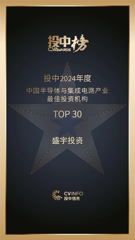 今日,2024“投中榜”发布,盛宇投资荣获中国最佳创业投资机构TOP100、中国最佳半导体与集成电路产业最佳投资机构TOP30。