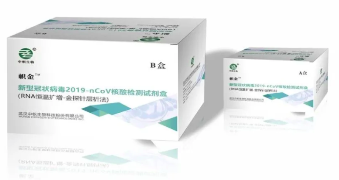 武汉中帜生物科技股份有限公司在新冠肺炎疫情期,快速启动新冠病毒核酸检测试剂的研发和注册申报工作,于2020年3月31日正式获得国家药品监督管理局颁发的“新型冠状病毒2019-nCoV核酸检测试剂盒(RNA恒温扩增-金探针层析法)”和“新型冠状病毒2019-nCoV核酸检测试剂盒(双扩增法)”双产品注册证。
