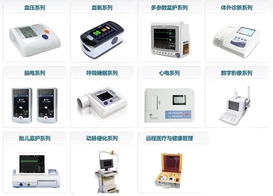 康泰医学拥有行业内最全的中小型电子医疗设备产品系列,涵盖血氧类、血压类、心电类、脑电类、超声类、监护类、影像类等20多种,根据具体产品类别既可用于医疗机构,也可用于家庭个人、企事业单位等场合,基本上覆盖了医疗器械和检测设备领域,产品种类丰富程度超过同行业上市公司。公司的血氧仪国际知名度领先,公司产品远销欧美等120多个国家和地区。